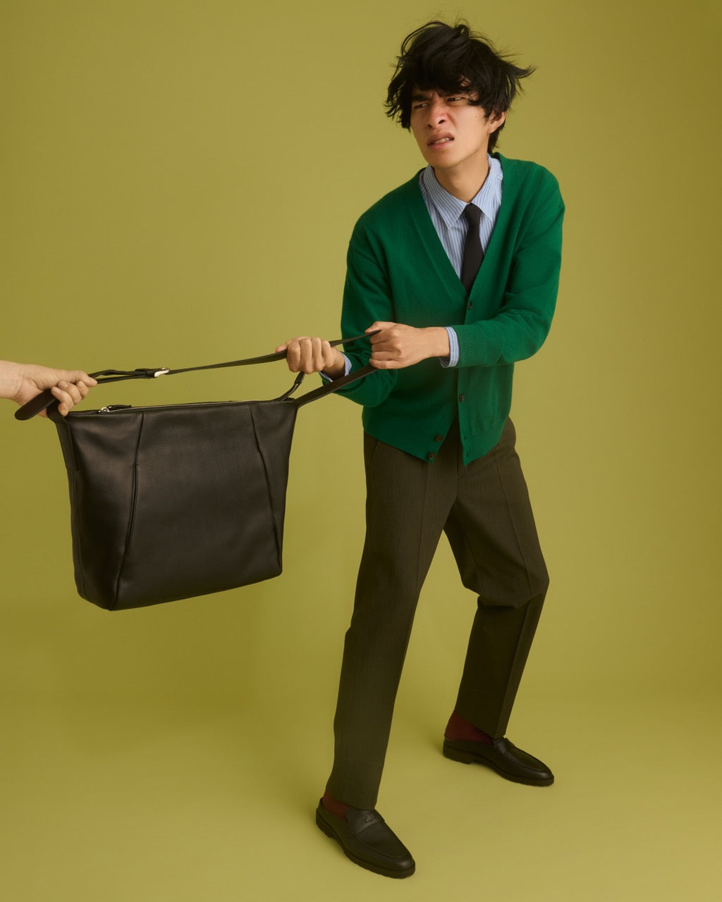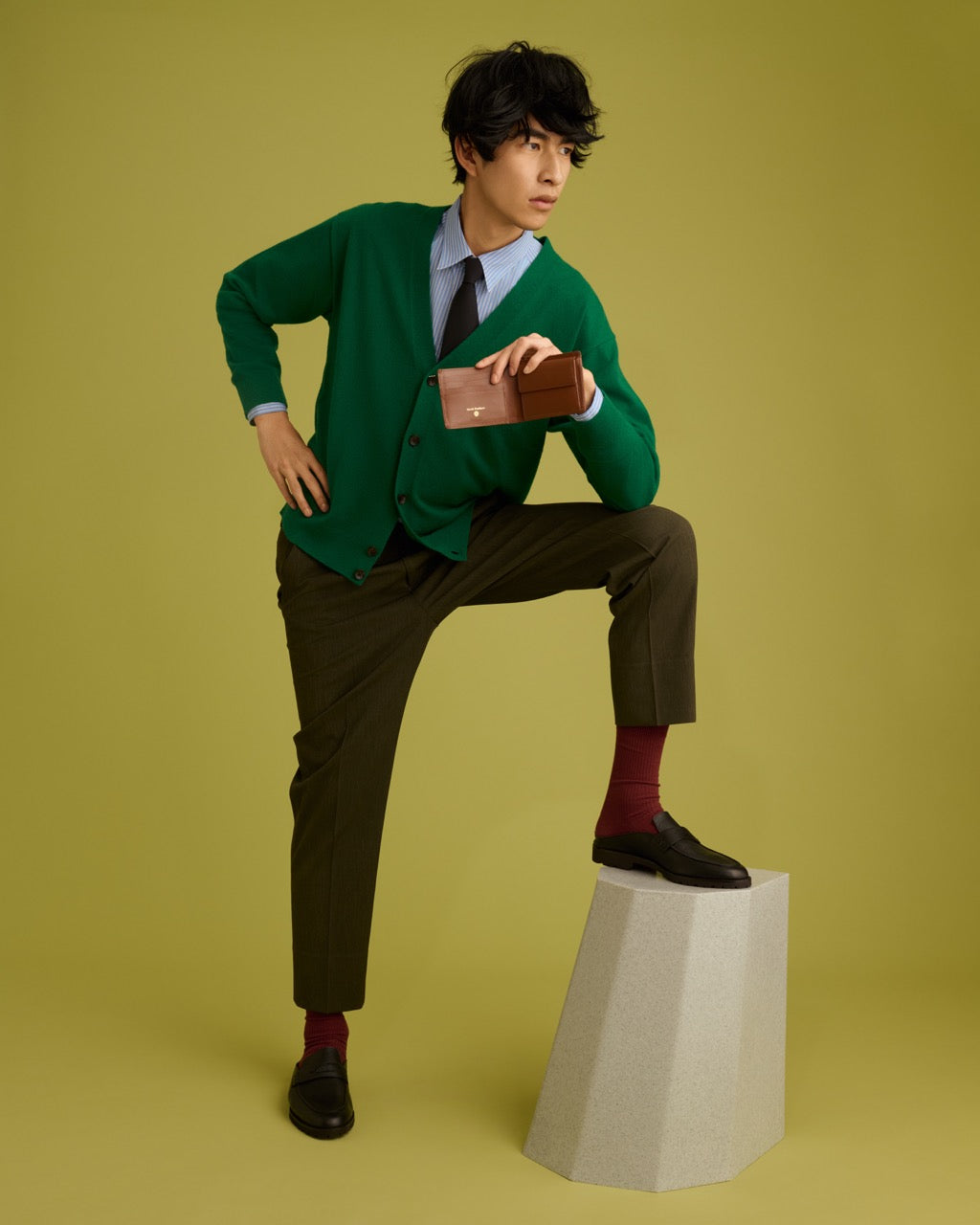 おちゃらけフォーマルスタイル クスッと笑えるような少し崩したコーディネートには、ベーシックで落ち着いたレザーアイテムをプラス。コーディネートとのバランスをとって合わせよう。 使用アイテム Dakota BLACK LABEL AM8 Series Shoulder / Brown $292.00 Dakotaショルダーバッグ Green $219.00 VIA DOAN Zilda Square Shoulder Bag / Black $657.00 Sold Out LEZALI Embossed Leather MT Coin Case / Sky $44.00 NO SIGN Embossed Leather Small Square Pouch / Black $188.00 CYPRISミニ財布 Green $219.00 Hawk Feathers二つ折り財布 Brown $268.00 Sold Out Liberatoローファ― Black $426.00 使用ブランド 持つ人の個性を引き立てるレザーアイテムを提案 Dakota BLACK LABEL ナチュラルなカジュアルアイテムを発信 Dakota ”愛を込めた”手作業がコンセプト VIA DOAN ちょっと面白く便利な雑貨小物などの商品を展開 LEZALI 上質な暮らしを愉しむ大人のためのレザーグッズブランド NO SIGN コダワり派のあなたへ!最高級な技術が詰まったブランド CYPRIS 日本人の熟練職人が生み出す、高い質感と既存のものとは一味違うアイディア Hawk Feathers アップサイクルした畳と柔らかな姫路レザーのシューズブランド Liberato FORMALアイテムコレクション