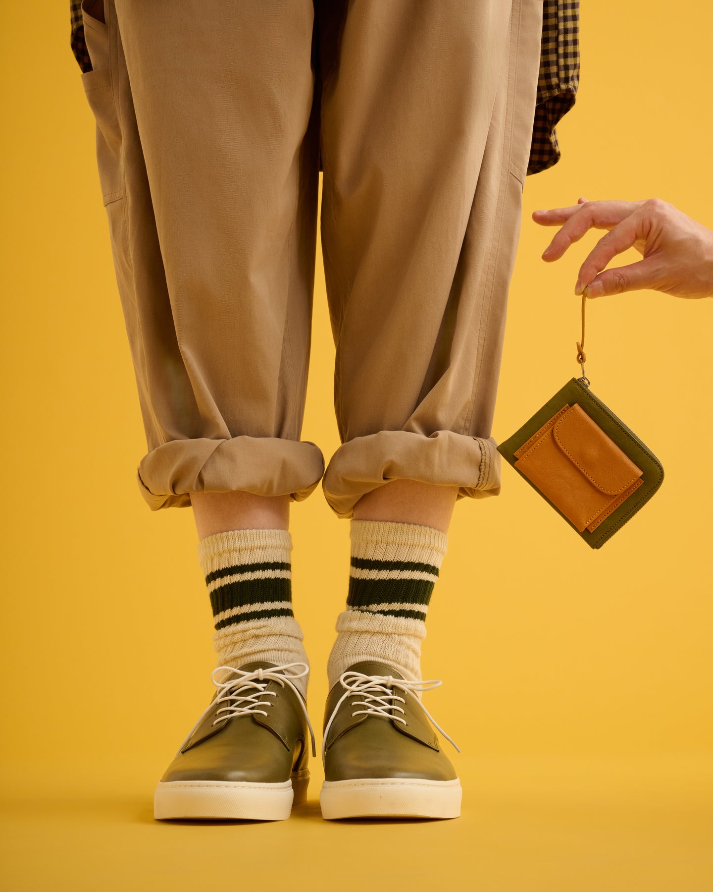 シンプルなお散歩スタイルにはインパクトのあるレザーアイテムを シンプルな装いの日こそ、レザーアイテムで遊び心をプラス。ターコイズブルーの存在感のあるバッグやダルメシアン柄のショルダーバッグやカラフル小物が、さりげなくコーデを格上げしてくれます。いつものお散歩も、ちょっと特別に感じられるスタイルです。 使用アイテム Sold Out RENトートバッグ Turquoise $177.00 Sold Out Liberatoローファ― Black $426.00 artigiano長財布 Dalmatian $183.00 kissoraミニ財布 $256.00 TOSSスニーカー khaki $329.00 numeri Sottile Mini Bi-Color / Green x Yellow $226.00 sugata Long Wallet / Layers / Black $219.00 使用ブランド トレンドに左右されないデザインとシンプルさ REN イタリア語で職人という名前のブランド名 artigiano 日々使用する中で楽しかったり気分が良くなる、そんな革製品を提案 DELIFE 日常にそっと寄り添う「kissora」との生活 kissora 革靴とスニーカーの要素を合わせ持ったハイブリッドシューズブランド TOSS ハンドメイドにこだわり、1つ1つ職人の手作業 numeri 「普通を作る工夫の重なり」をコンセプトに sugata LOCALアイテムコレクション