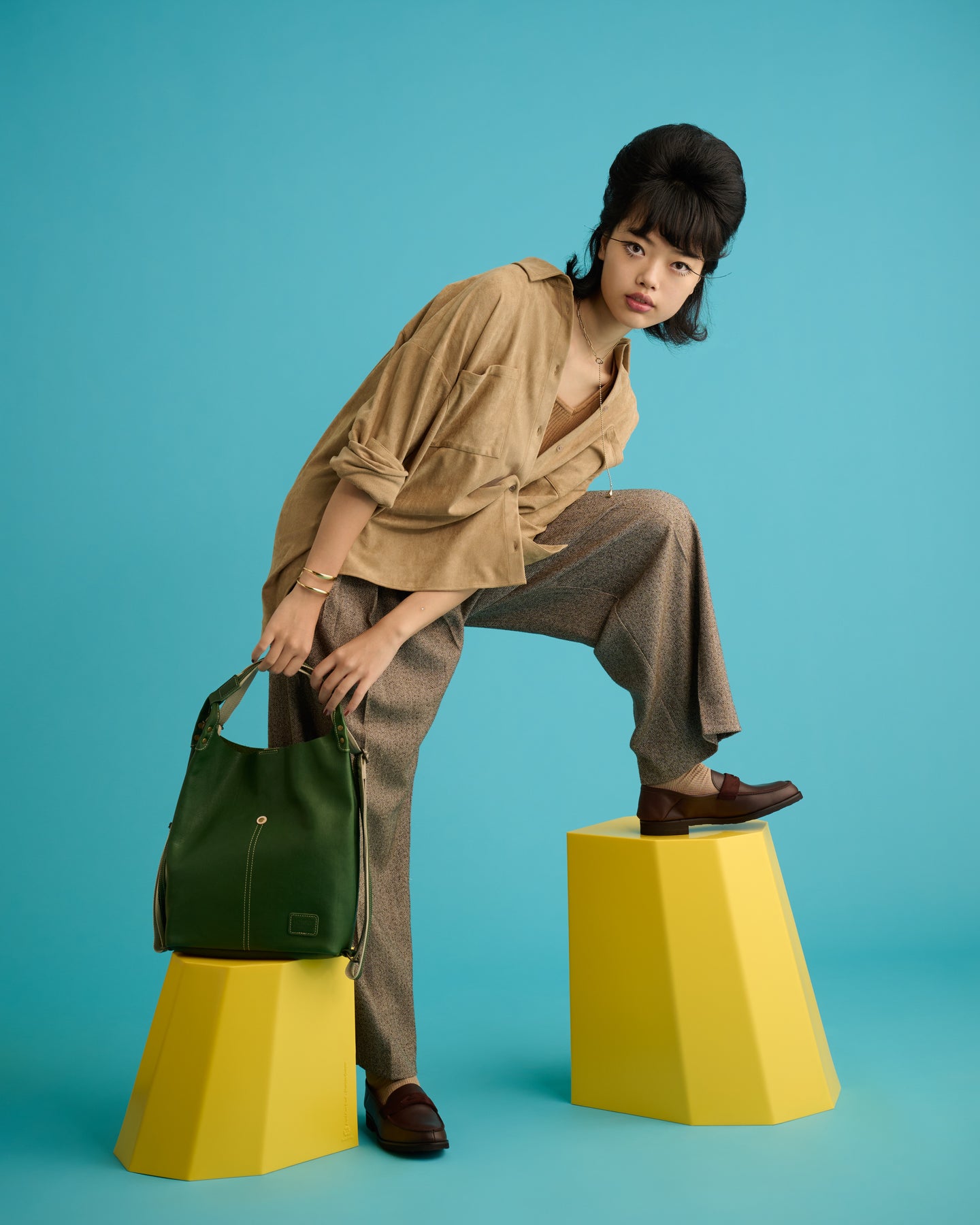 秋色で差をつけるお仕事女子コーデ こっくりした秋色を取り入れるだけで、お仕事コーデがぐっとおしゃれに。レザーの小物で季節感をプラスすれば、頑張りすぎない大人のコーデに。通勤も打ち合わせも、ちょっと気分が上がるスタイルに。 使用アイテム ESTINE Logical Series Leather Shoulder Bag / Black $329.00 SENTI FLATTER THE SENSES Leather Blade Circle Key Strap / Red $110.00 ESTINE Alonge SG Series L Zipper Square Wallet / Light Blue $232.00 Laisser Faire Pieza 2 Way Back Pack / Green $217.00 使用ブランド モードでモダンなどこか目を惹くデザイン ESTINE アップサイクルした畳と柔らかな姫路レザーのシューズブランド Liberato 感性に刺激を与えられるモノづくりを目指す SENTI FLATTER THE SENSES フランス語で「自由気ままに」の意味を持つ Laisser Faire WORKアイテムコレクション