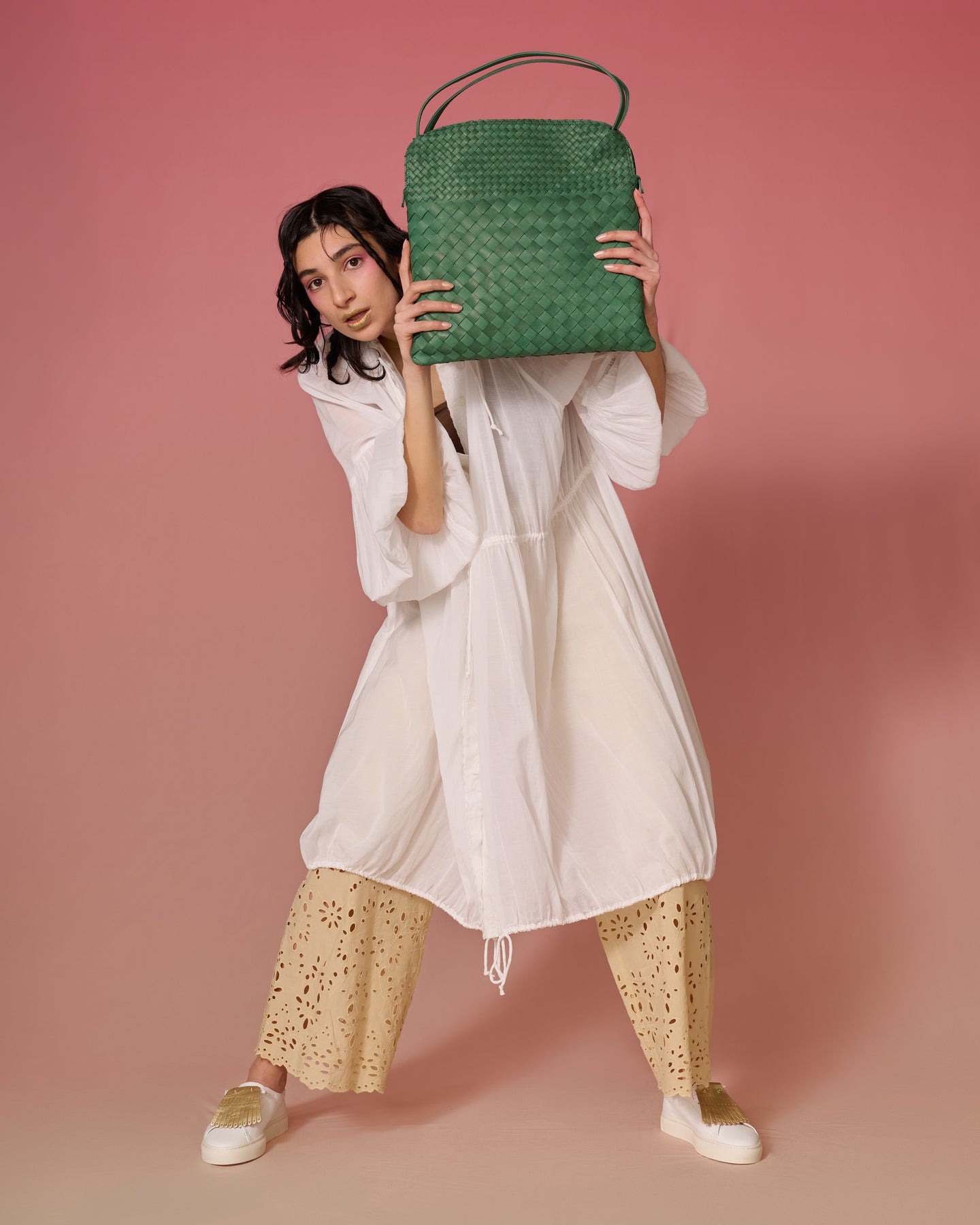 アジアバカンスの陽ざしに、グリーンを 鮮やかなグリーンの編み込みバッグは、シンプルな装いに遊び心をプラスしてくれます。やわらかいレザーを丁寧に編み上げたバッグは、軽やかさと存在感を両立。白いワンピースと合わせれば、アジアのリゾートにぴったりのスタイルが完成 使用アイテム bell la bellハンドバッグ Greige $292.00 TOSSスニーカー White $292.00 Sold Out numeri Shoe Quilt (Metallic Leather) / Gold $61.00 Sold Out Arukan Fショルダーバッグ グリーン $463.00 Sold Out 村瀬鞄行 mimi rand/ Amethyst $438.00 moja kawaポーチ red (esp. wine, etc.) $104.00 使用ブランド 上品なデザイン・肌触りのいい革を使ったブランド bell la bell 革靴とスニーカーの要素を合わせ持ったハイブリッドシューズブランド TOSS ハンドメイドにこだわり、1つ1つ職人の手作業 numeri "編み・織り "がテーマ Arukan F ランドセルを通じて、未来へ、そして世界へ挑戦する子供たちを応援する MURASE KABANKO 手縫いの温かさと想いが伝わるアイテムたち moja kawa HIPSTARアイテムコレクション