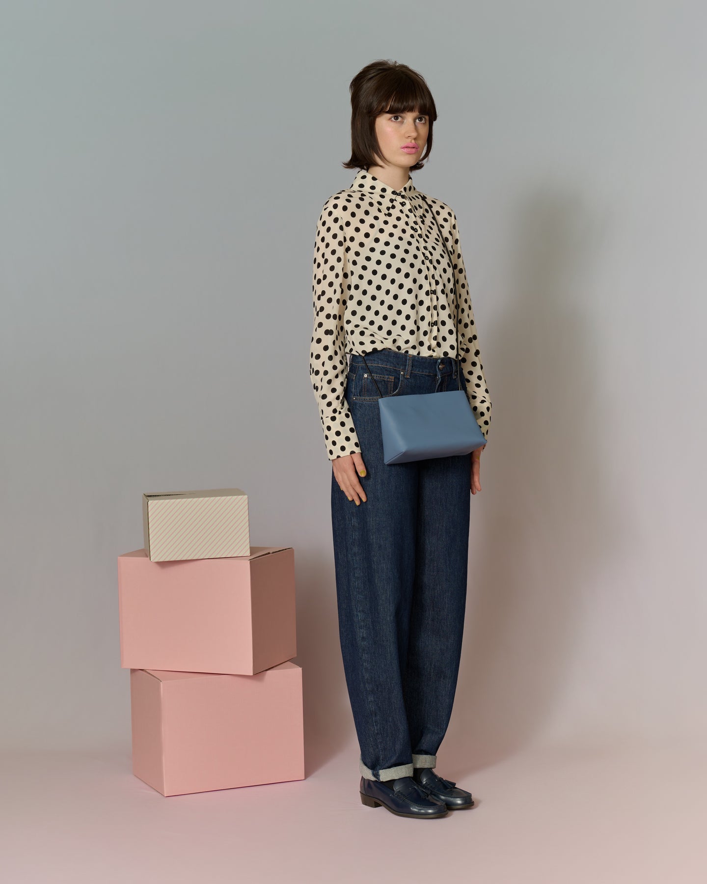 コーヒーと本を片手にゆるり休日さんぽ。 ドットシャツにデニムを合わせた、どこか懐かしいクラシックな装い。そこに、すっと差し込むブルーのショルダーが、軽やかな都会感を添えてくれます。近所のカフェや本屋さん、気ままな休日のお供にぴったりなミニマルバッグです。 使用アイテム FABRIK UNIT / MINI SHOULDER BAG / Mustard $195.00 Sold Out CORGAショルダーバッグ Blue $146.00 Sold Out HARUTAローファー Blue $156.00 野村製作所ポーチ Ume $77.00 Sold Out 1/2HALFキーケース Pink $43.00 Sold Out KIYOKAWAポーチ camel $55.00 使用ブランド 多彩なカラーバリエーションの FABRIK FABRIK とことんシンプルを追求したデザイン CORGA ローファーといえばHARUTA!日本が誇る老舗靴メーカー HARUTA 大正12年より、革小物を作り続けている野村製作所。 Nomura Manufacturing Co. 半分半分の合わせて100パーセント。 1/2 HALF 使う人を考えられたシンプルなデザインのバッグメーカー KIYOKAWA WEEKENDアイテムコレクション