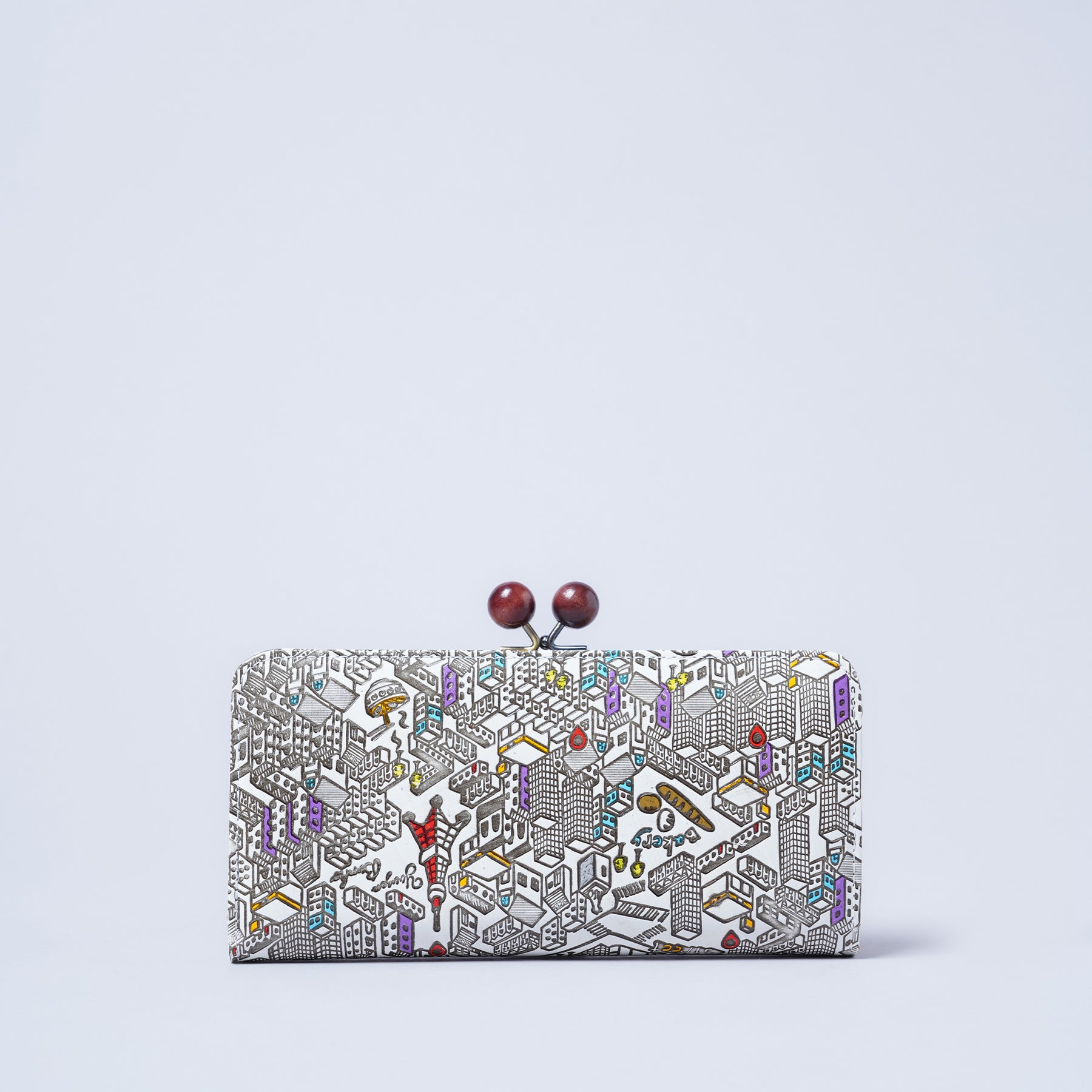 Yuzen Bunko Kiss Lock Long Wallet / TOKYO (White)