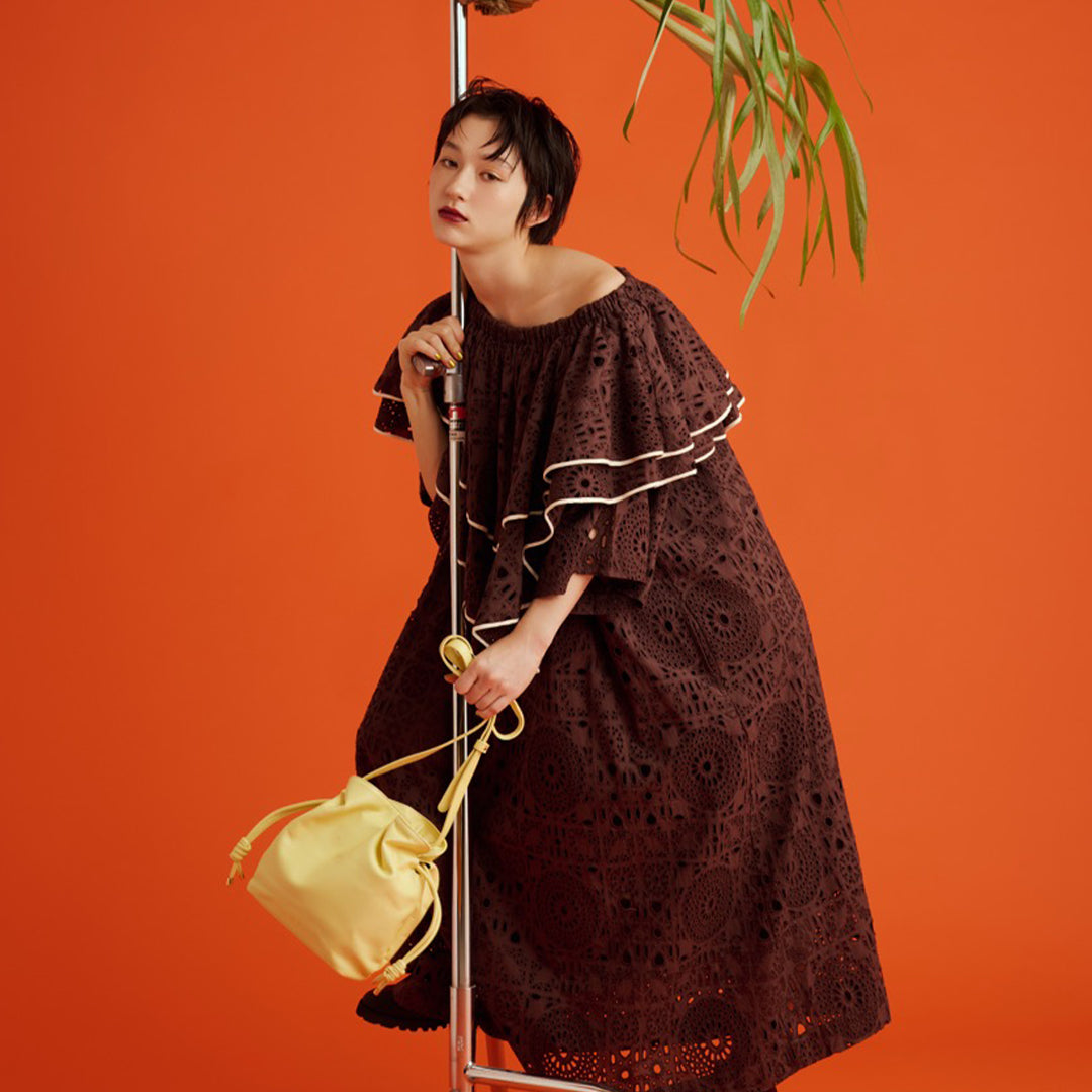Cute drawstring shoulder bag with a round shape from the “ZITA” series. It has a fashionable look, but is also highly practical. The bag is made of high quality cowhide leather, which fits comfortably in the hand, and its suppleness and soft texture can be felt visually. To make the most of the texture, unnecessary stitches are omitted, and the roundness is created only by the craftsman's cutting technique. The gold hardware and the knotting of the leather strap stand out in the simple design, and also serve as exquisite accents to the styling. The shoulder strap is delicate and feminine, making it suitable for both daily use and small outings. The interior is made of Teflon coated fabric for easy care.