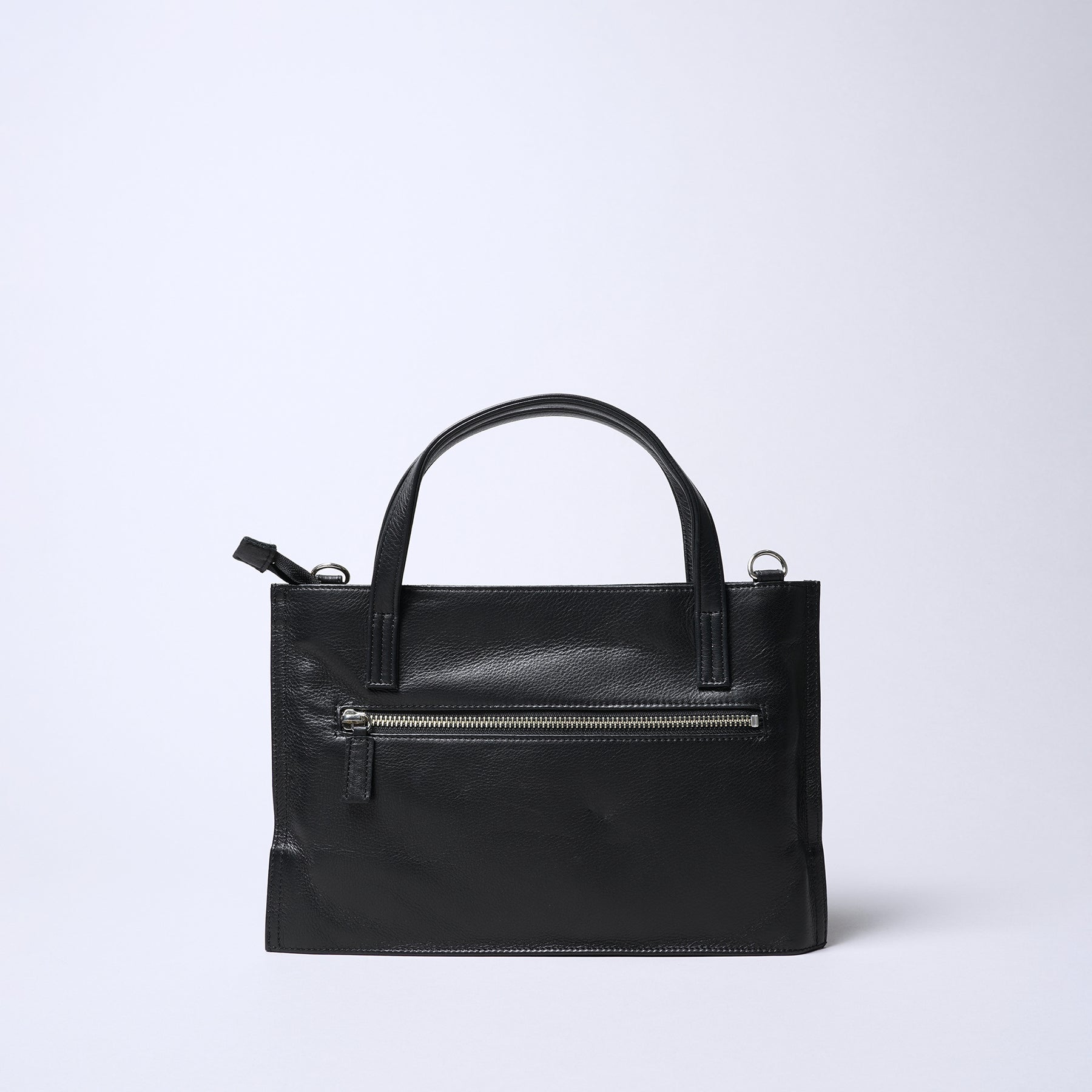 Crafted from soft, supple cowhide leather with a pleasant feel, this design emphasizes clean, straight lines to deliver a sleek, sophisticated look when carried. The gusseted construction allows the bag to expand when filled, offering a dynamic change in its appearance.