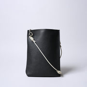 ■A shoulder bag featuring industrial metal hardware, with one side having gussets and the other without, creating an asymmetrical shape. Though seemingly simple, it's packed with thoughtful details.