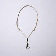 A neck strap featuring a double-ring clip-on snap hook. Use it as a glass holder or key holder with the ring attached, and remove the ring to use it as a smartphone holder or name tag holder.