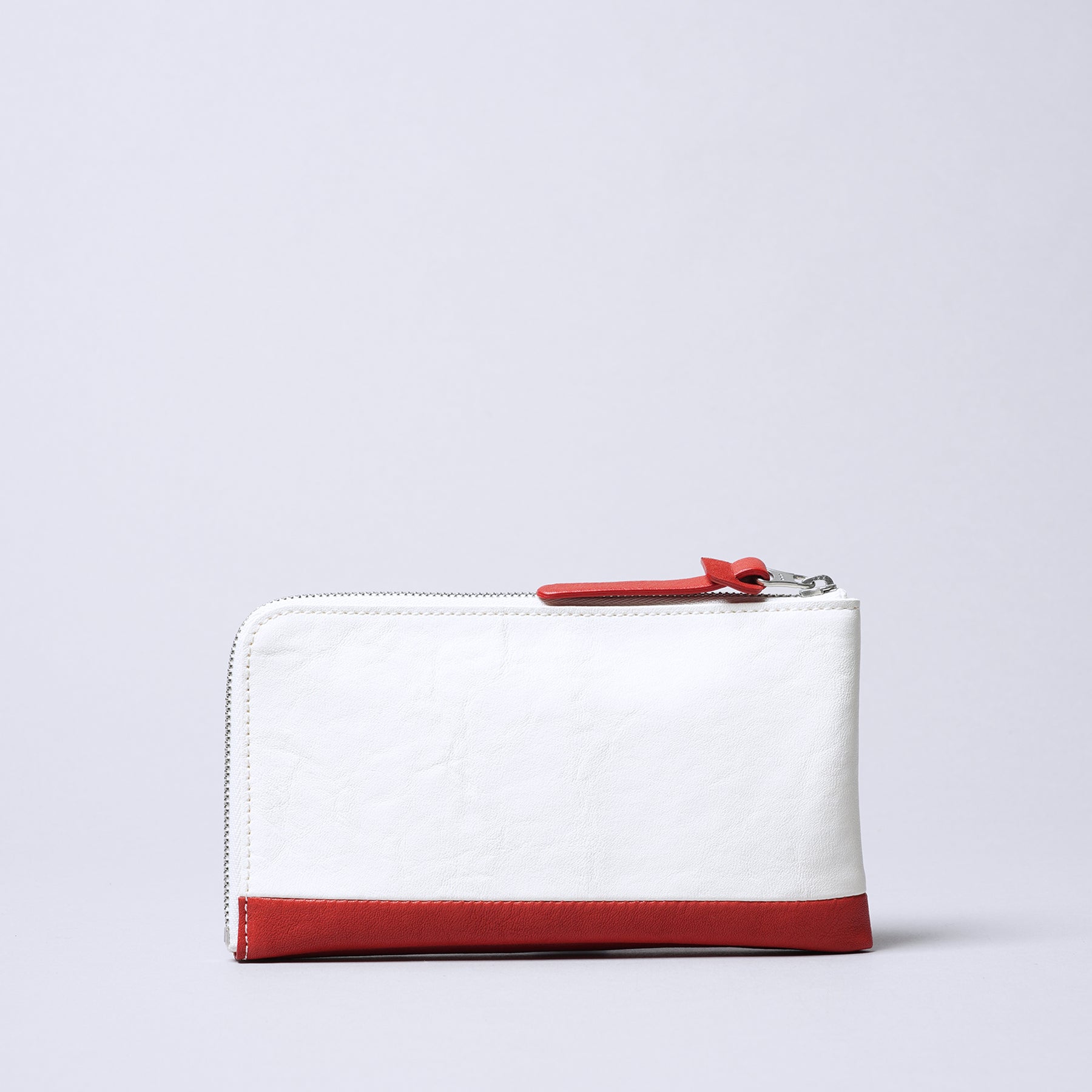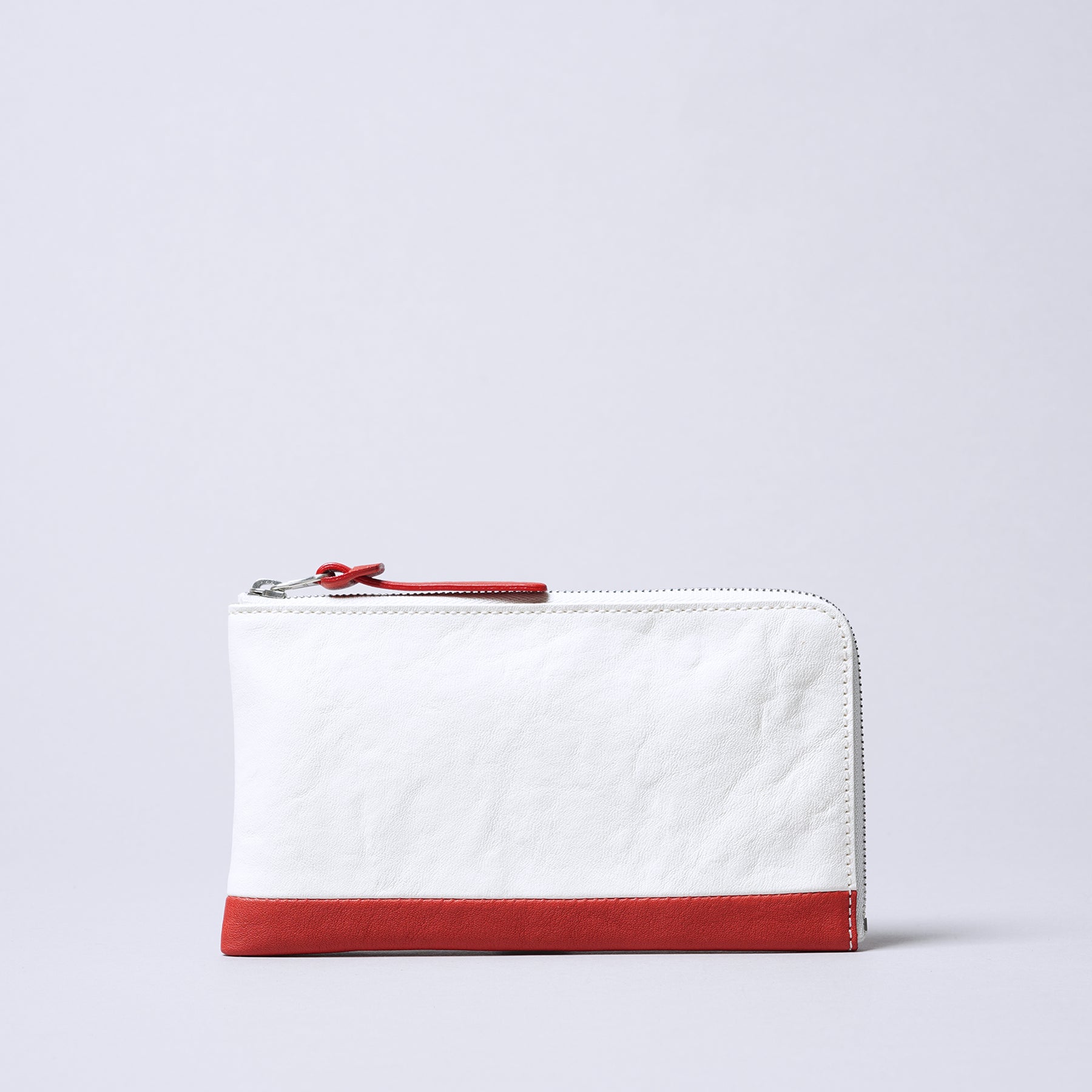 <ヌメリ>ソッティ バイカラー L字長財布/ホワイト×レッド