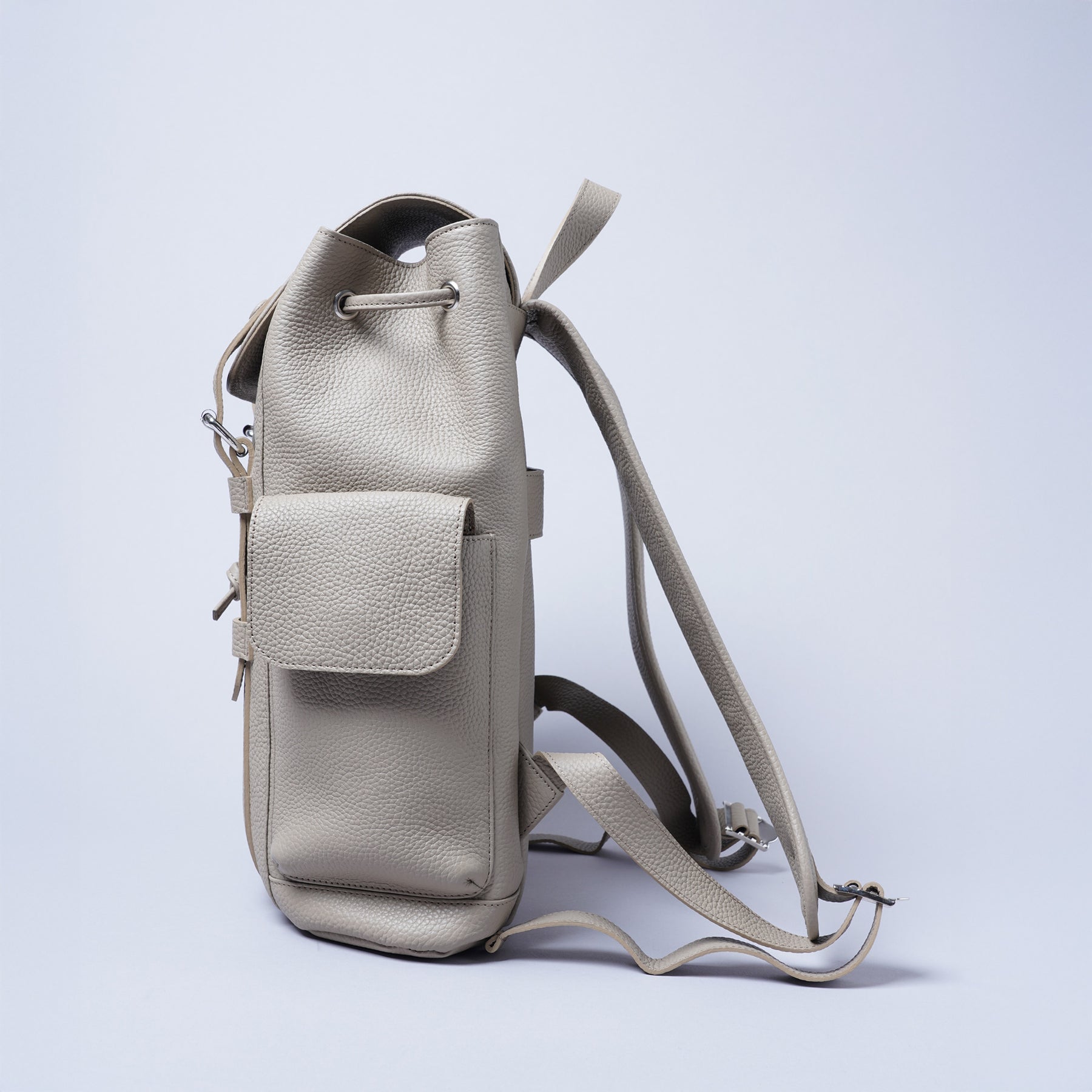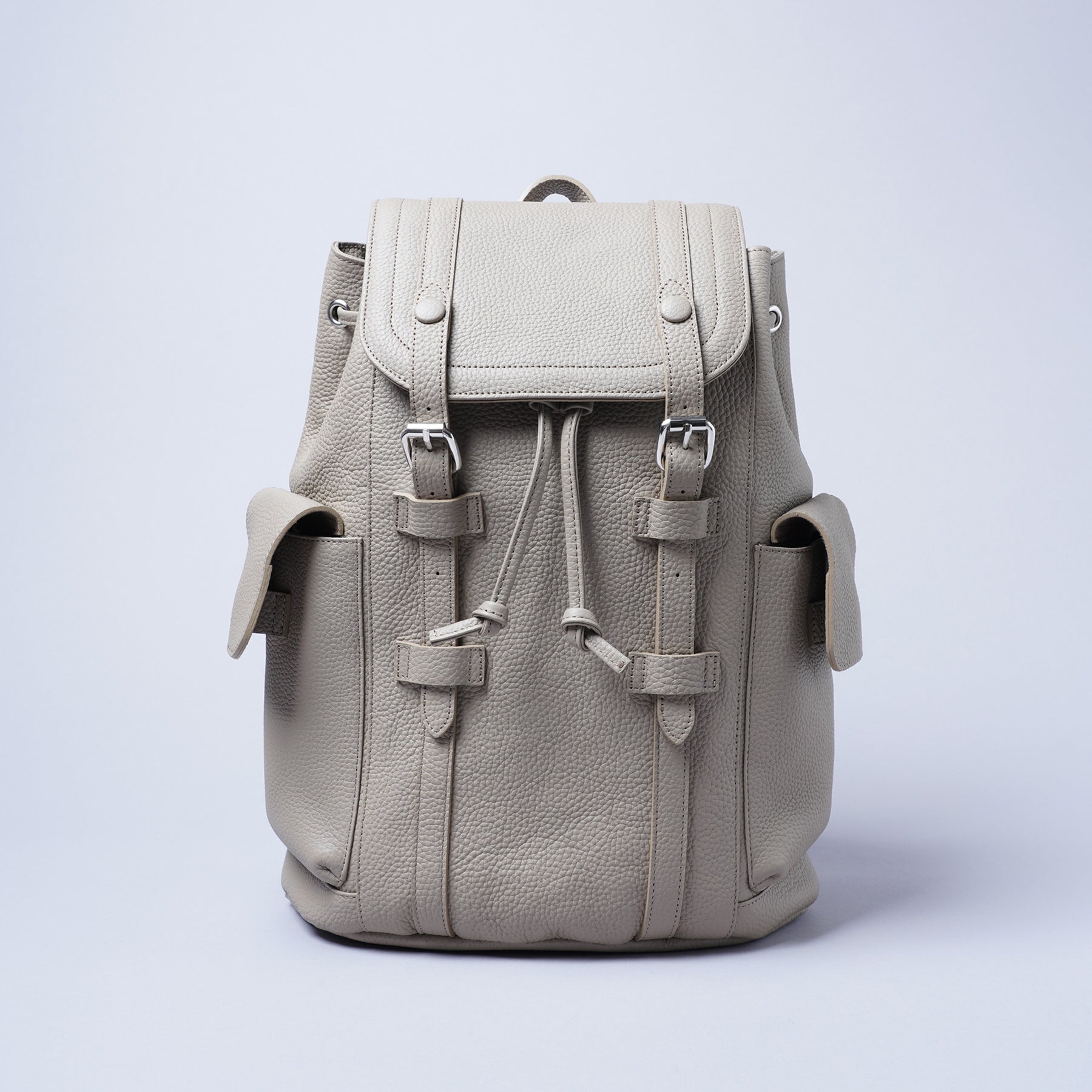 日本国内の老舗タンナーで作られたエレガントなシボ感が特徴の高級レザーを贅沢に使用したビッグサイズの巾着式デイパックです。