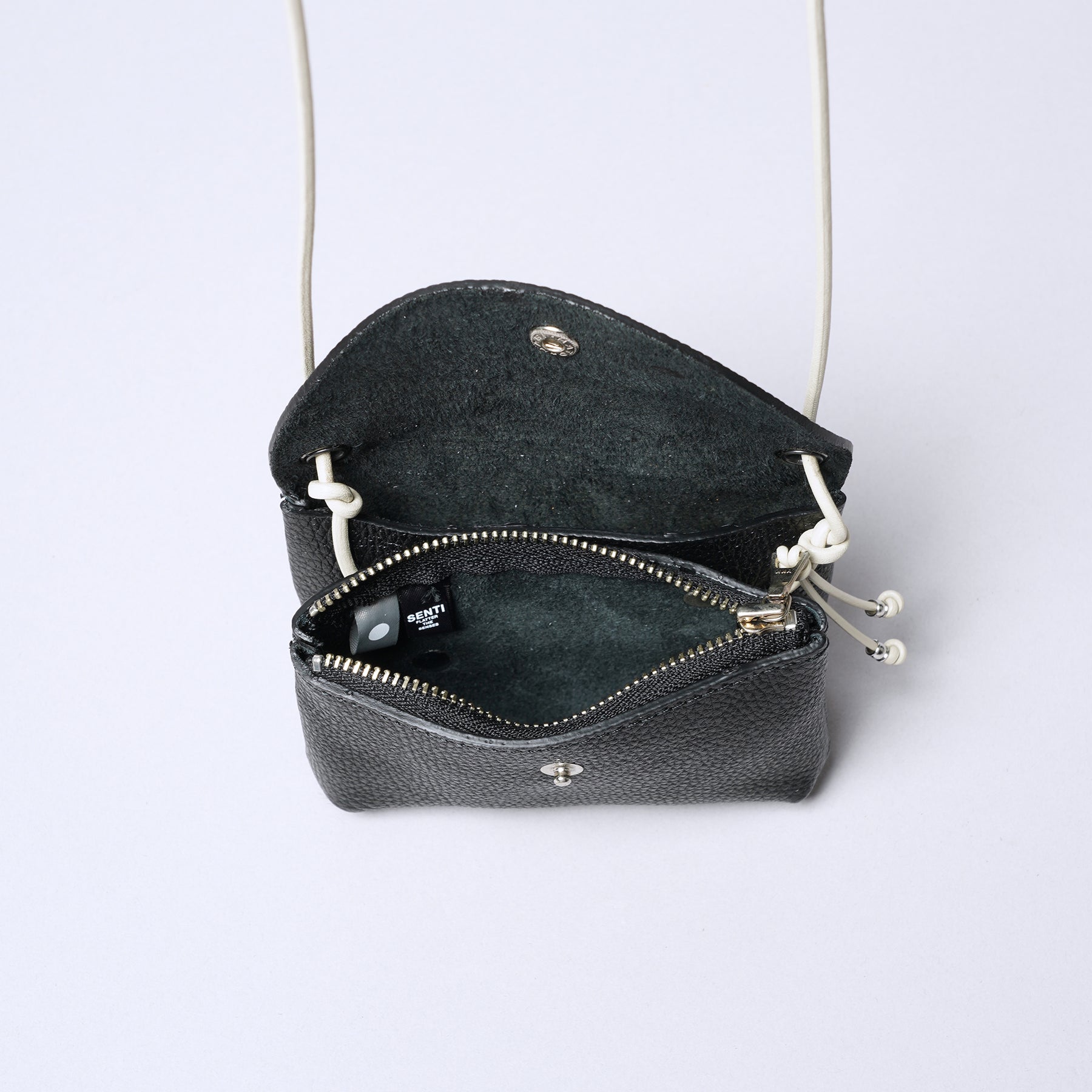 <センティ フラター ザ センシーズ>シュリンクレザーネックウォレット/アイボリー×ブラック