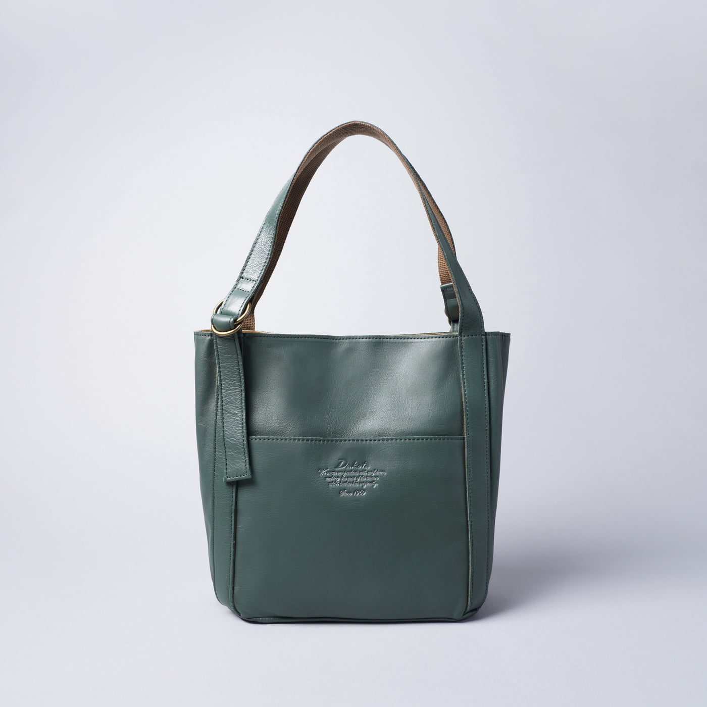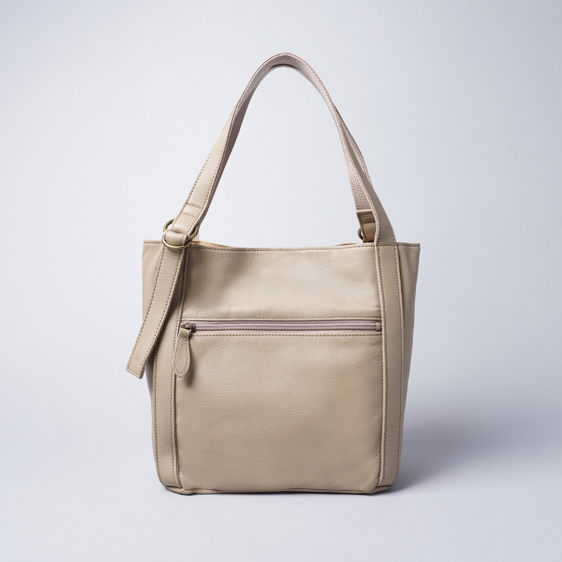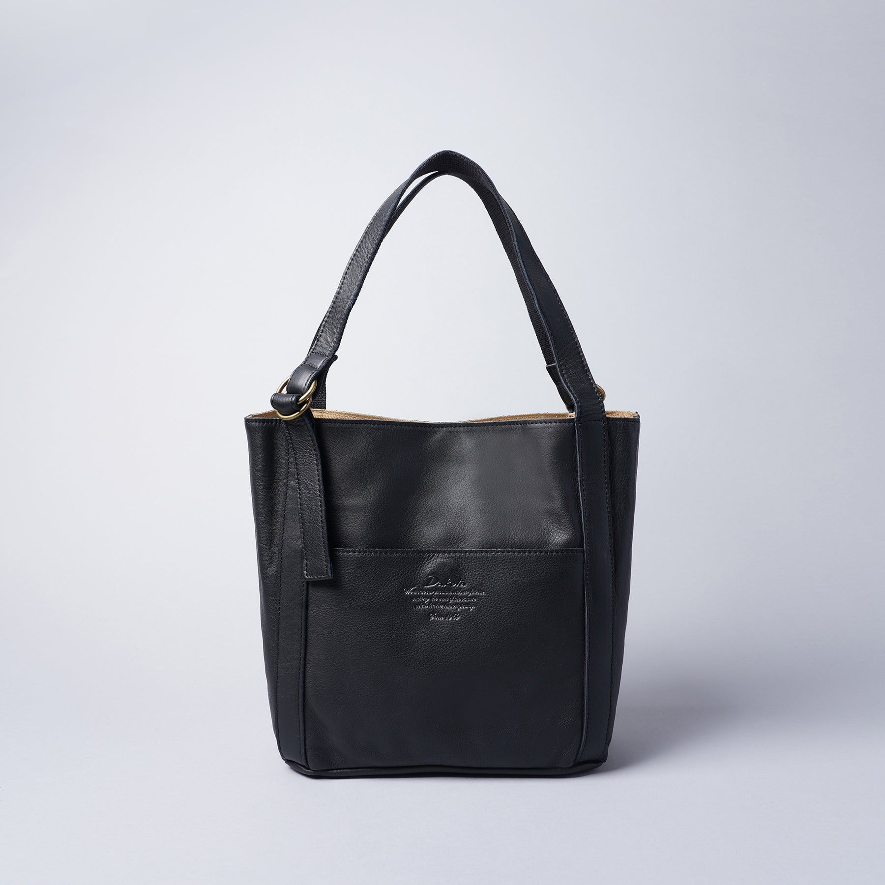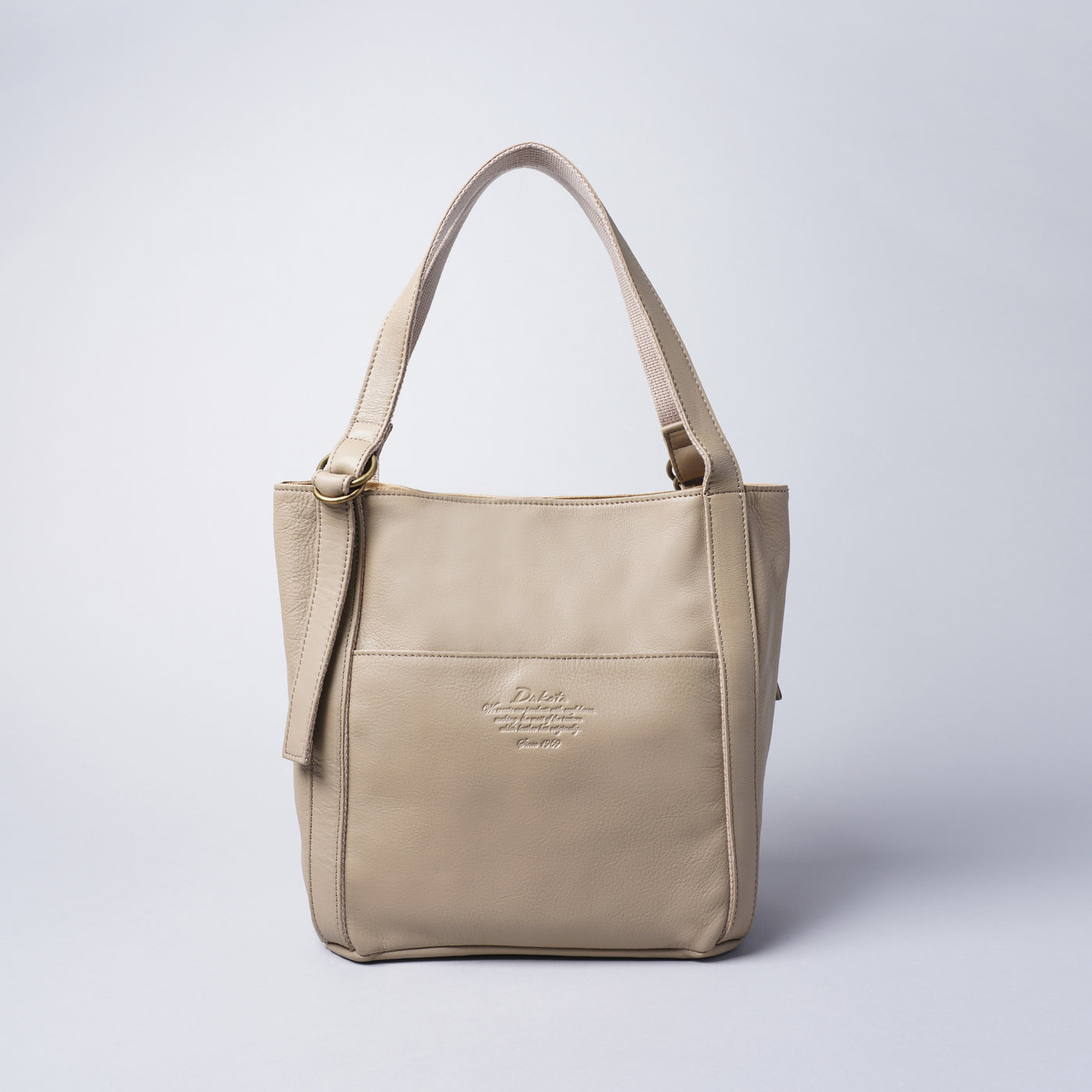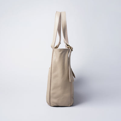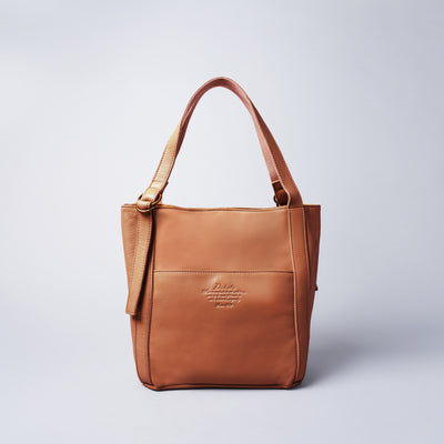 タッチ感が良いソフト牛革を使用しました。ざっくりとシンプルなフォルムの、普段使いに最適なバッグです。メイン収納はマグネット式で大きく開き、長財布やペットボトルの出し入れもラクラク。デザインアクセントのダブルリングを使用してハンドルの長さを調節することができますので、ハンドからトートまで好みに合わせた持ち方が可能です。