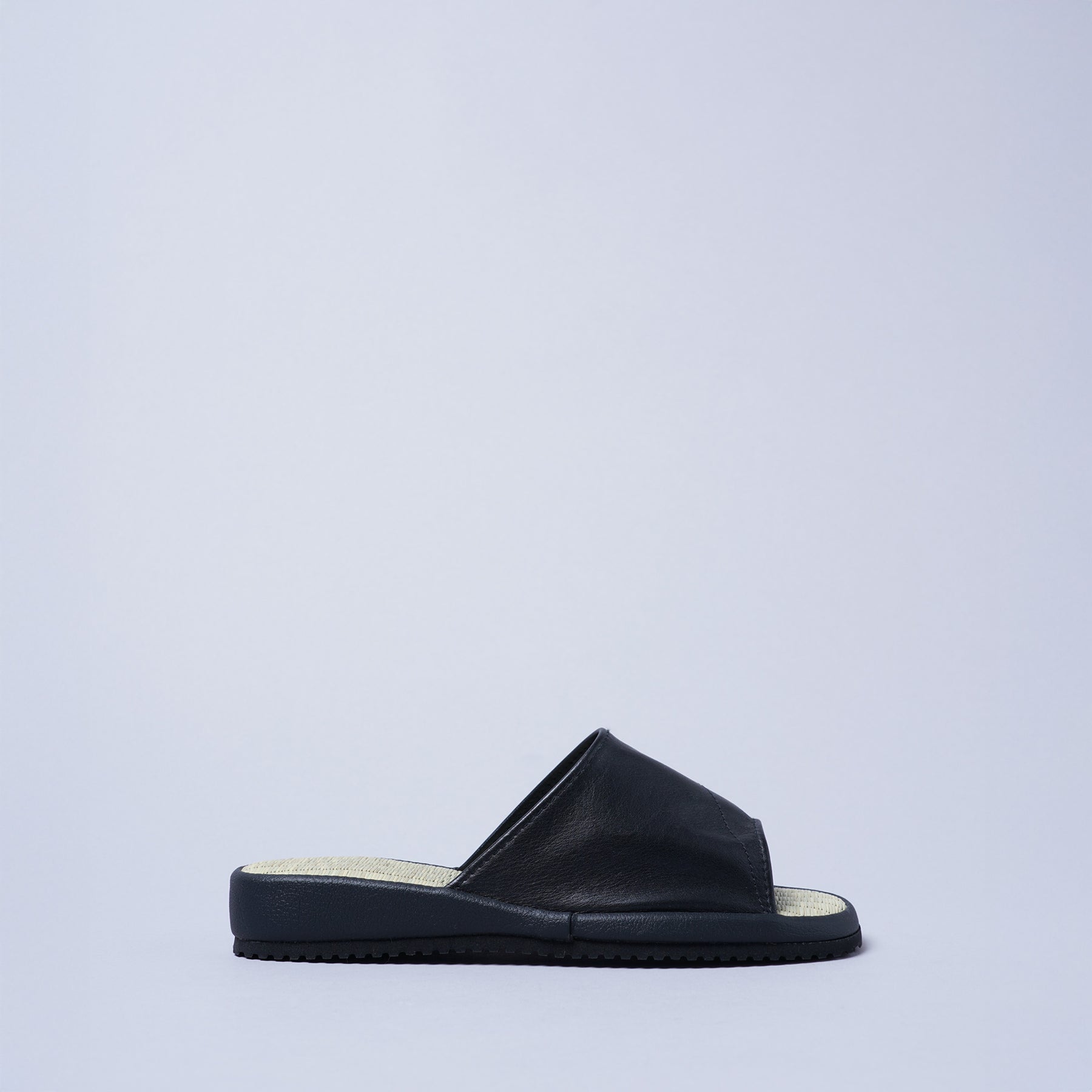 Liberato's classic, sustainable Tatami sandal slippers. Using ultra soft leather from Himeji and a Tatami insole upcycled from Tatami scraps from Kyushu, this pair brings quality relaxation to your daily life.