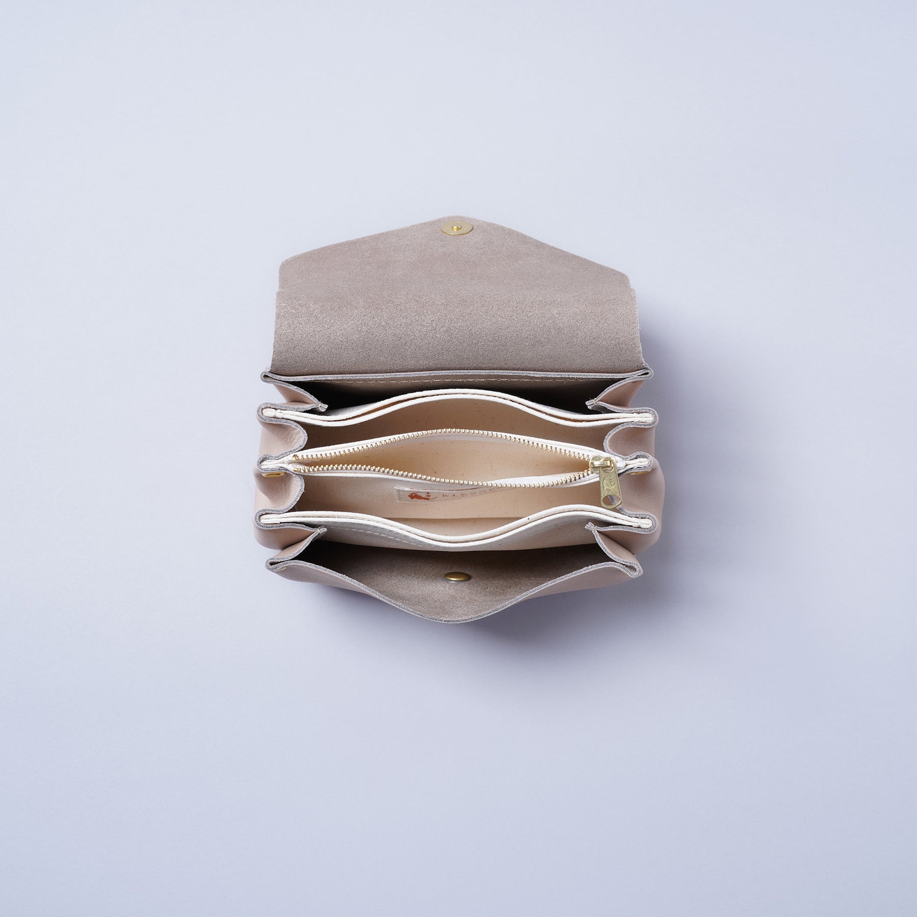 アコーディオンのように仕立てられたマチが特徴的な「エピカ」シリーズのショルダーバッグ