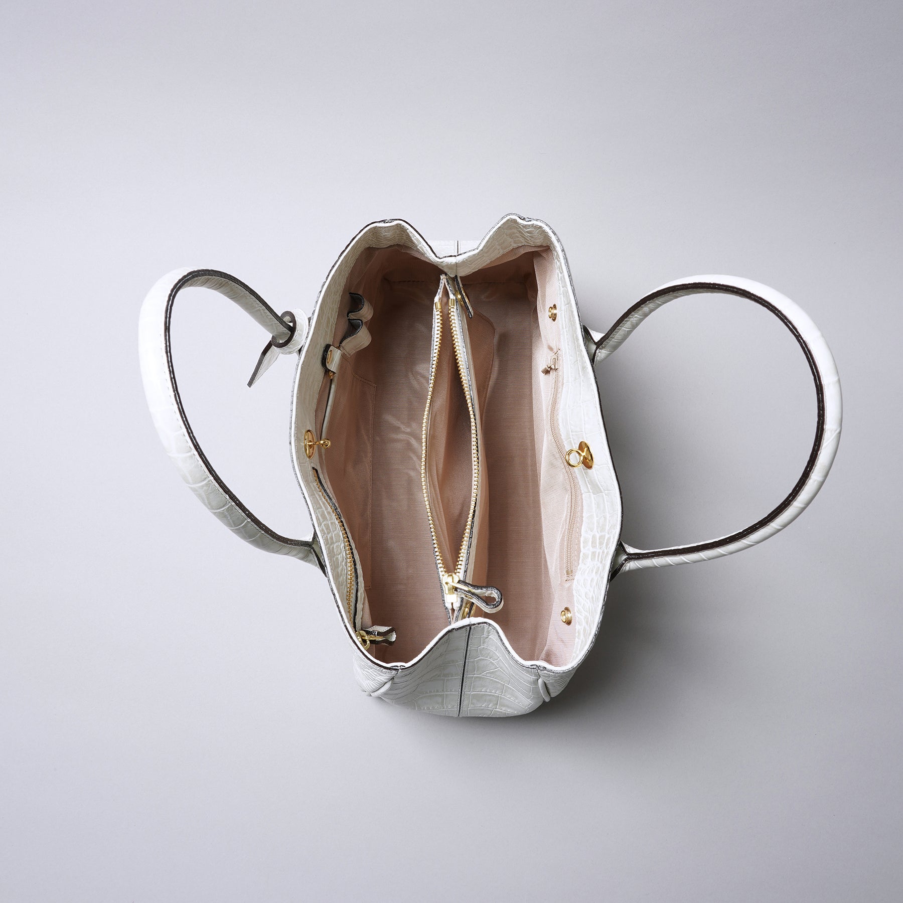 This versatile series excels in both business and everyday settings. Crafted from elegant crocodile-embossed cowhide leather, the central divider-style pocket can be detached with a snap hook and reattached to the back. It features ample pockets for cards and pens, offering great storage like a diaper bag.