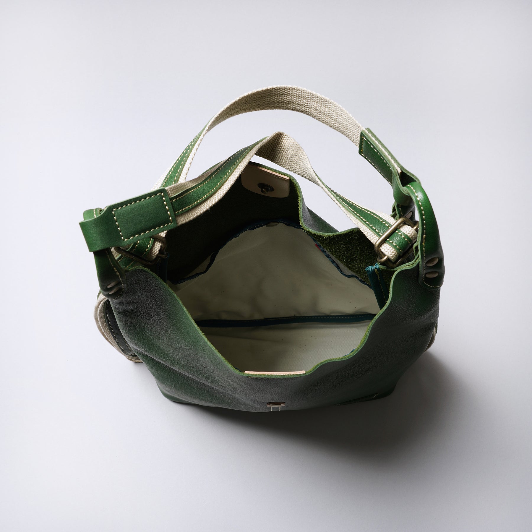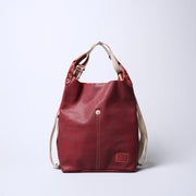 This lightweight bag features Bangladeshi shrink leather. It's a 2-in-1 design that transforms from a backpack to a shoulder bag with one touch. Entirely made in Japan, from leather dyeing to sewing. The scratch-resistant material allows for carefree use.