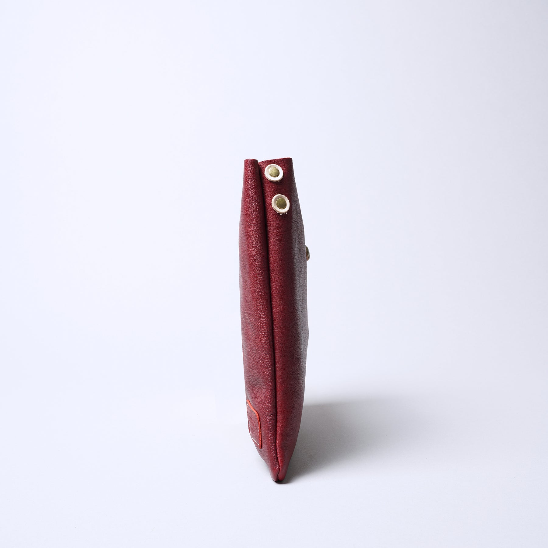 This lightweight bag features Bangladeshi shrink leather.  It has a slim profile for a clean look, yet it's a good size that can comfortably hold a long wallet. Entirely made in Japan, from leather dyeing to sewing. The scratch-resistant material allows for carefree use.