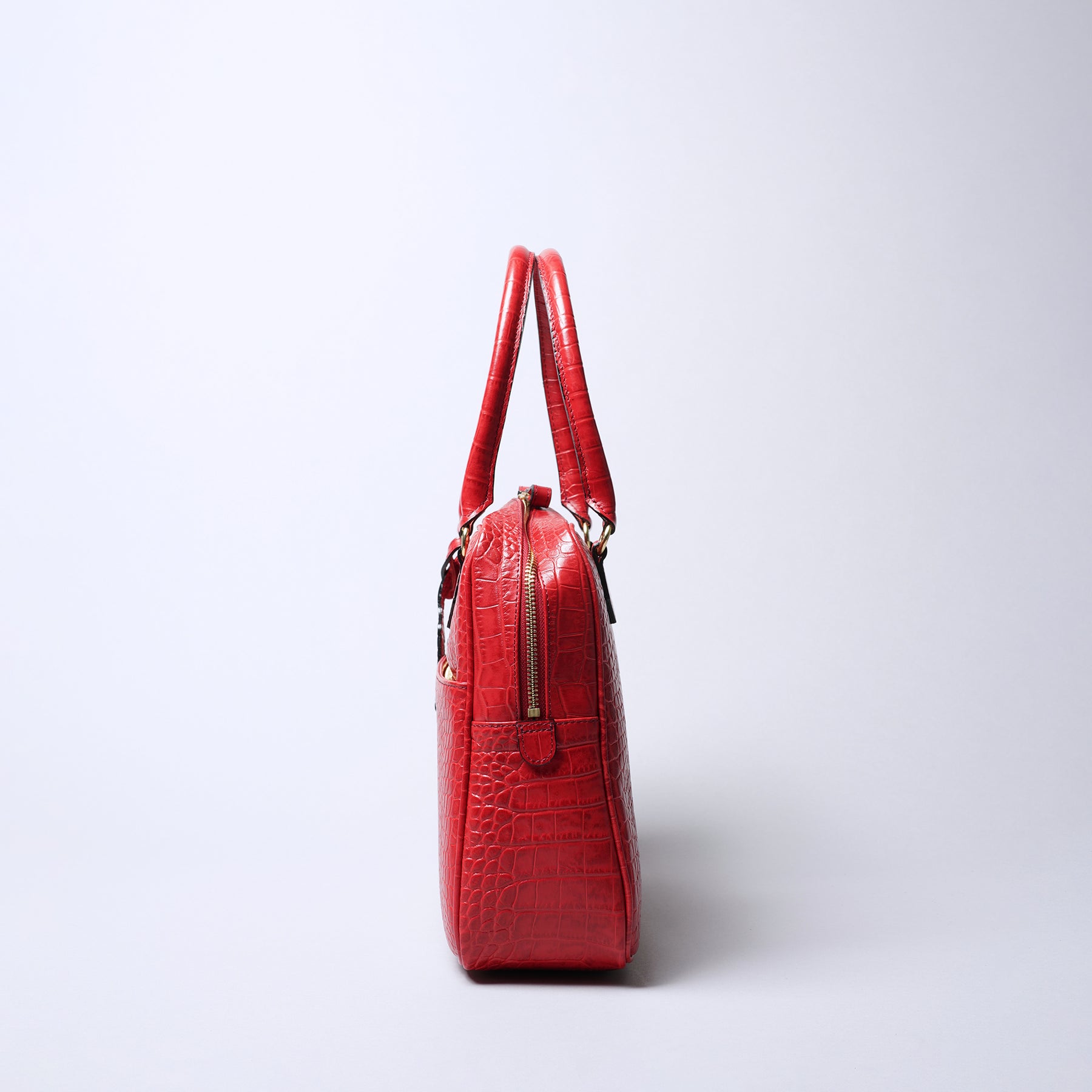 This versatile series excels in both business and everyday settings. Crafted from elegant crocodile-embossed cowhide leather, this tote bag perfectly accommodates A4-sized documents. It features a large front zipper pocket and a generously sized open interior pocket, offering convenient storage and organization. Includes a detachable shoulder strap made from the same premium leather.