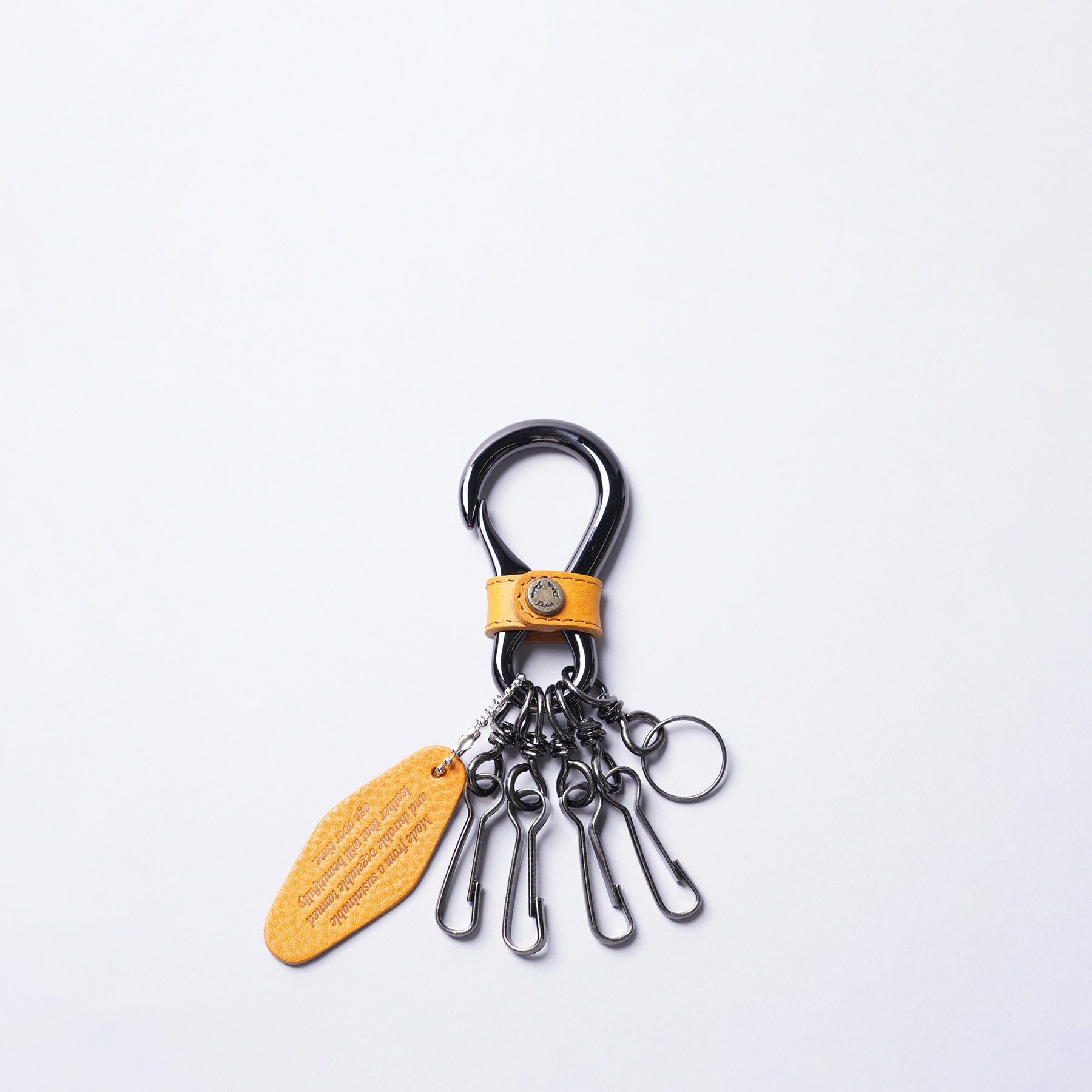 A series of key holders with Italian cowhide leather attachment. Vividly colored Italian leather is carefully sewn by craftsmen and matched with voluminous metal fittings. Key holders that give a stiff impression are embellished with Italian leather, allowing you to carry your keys in style. This key holder uses a chic black nickel swivel hook. Although the metal fittings are voluminous, they can be smoothly attached and detached with the hook. Four key holders and one key ring allow you to carry a total of five keys.