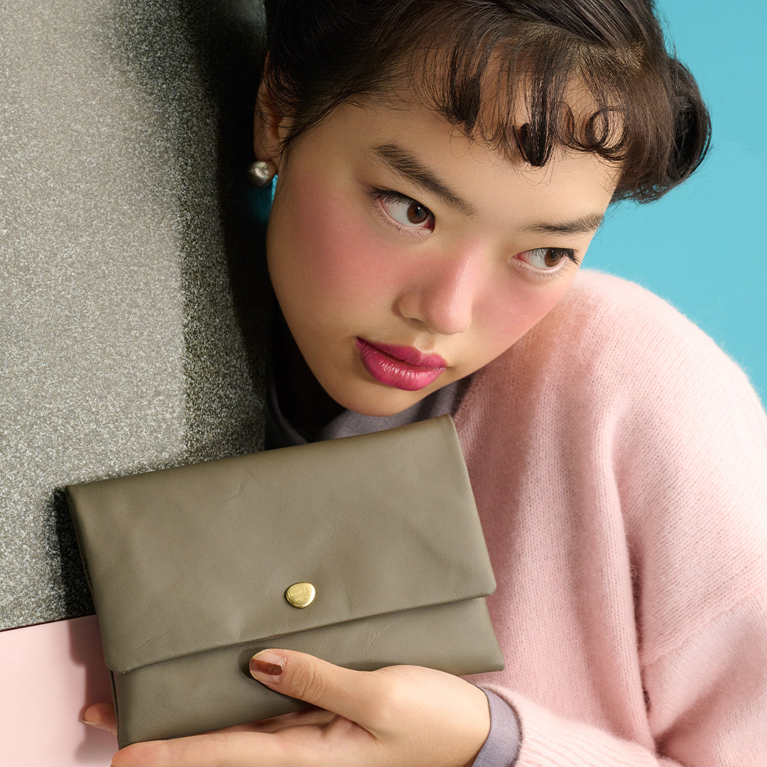 ハスキーシリーズで使っているホースレザーは使い込むほどにツヤが増し、より柔らかく美しく革が育っていきます。薄くても繊維が密なので、軽さと丈夫さも併せ持っています。POUCH WALLETは名前の通りポーチのよう。一見してお財布とは思えないデザインは、使いやすさを追求した機能から生まれました。