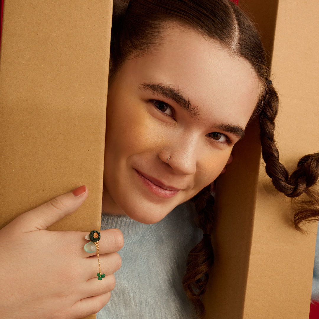 Free-size chain ring for any finger. The slide ball moves for easy on and off. Combination of large and small pigskin flowers and large and small natural stones. The chain swings around your finger, creating a glamorous effect. Can be worn with your existing hoop earrings or as a charm on a necklace chain. Enjoy a wide range of arrangements.*Due to the nature of handmade products and natural stones, there are individual differences in the shape and color of each piece.Selieu is a jewelry brand that expresses the beauty of nature in a small way. Combining the blessings of nature, such as soft, high-quality pigskin, natural stones and pearls, Selieu creates jewelry that allows you to enjoy the textures and colors, one by one. Wear Selieu jewelry and you will naturally start smiling. Selieu was launched in 2014 as a way of expressing oneself. The company also organizes workshops and supervises projects for the promotion and development of the leather industry.