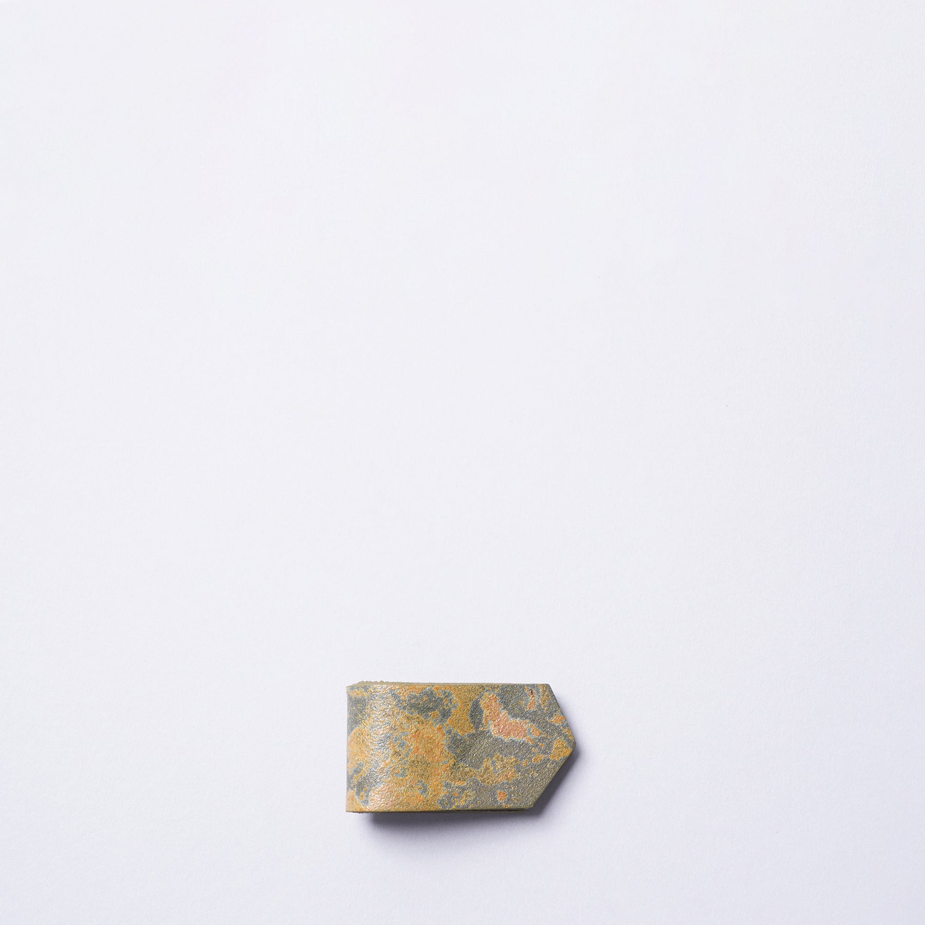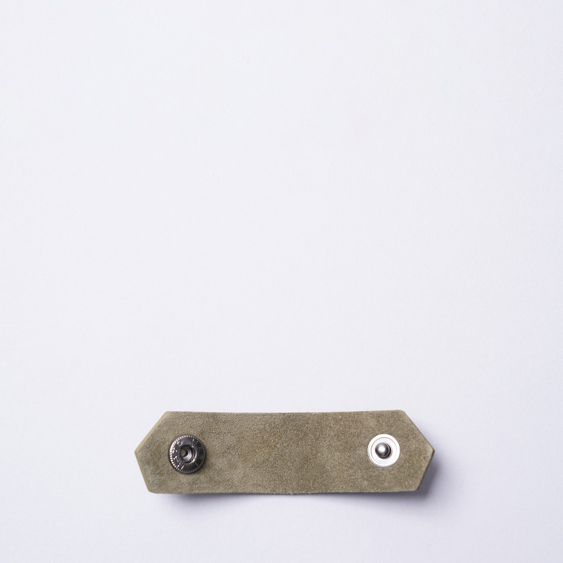 這款線材收納帶是採用黃銅鏽加工處理之皮革製成。此種材質乃由皮革職人依據積累經驗及感性將一片片皮革噴塗黃銅或紅銅,使之產生鏽化效果,既而精心製作成具有工藝品等級的皮革。這款商品可用於整理收納充電線、線材等物品。