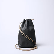 ■皮繩長度可以繩節調整,可作為手提束口袋,也可肩背使用。