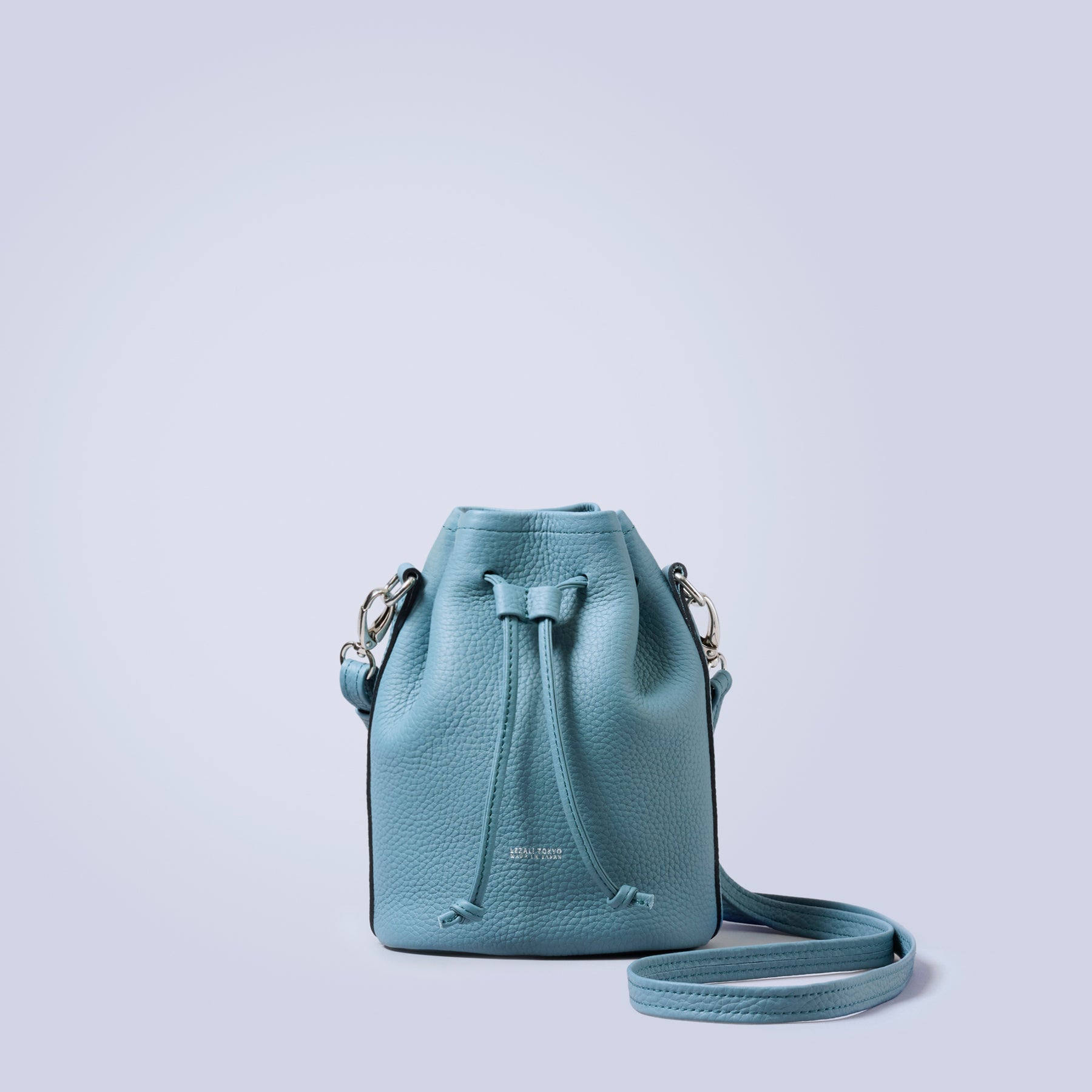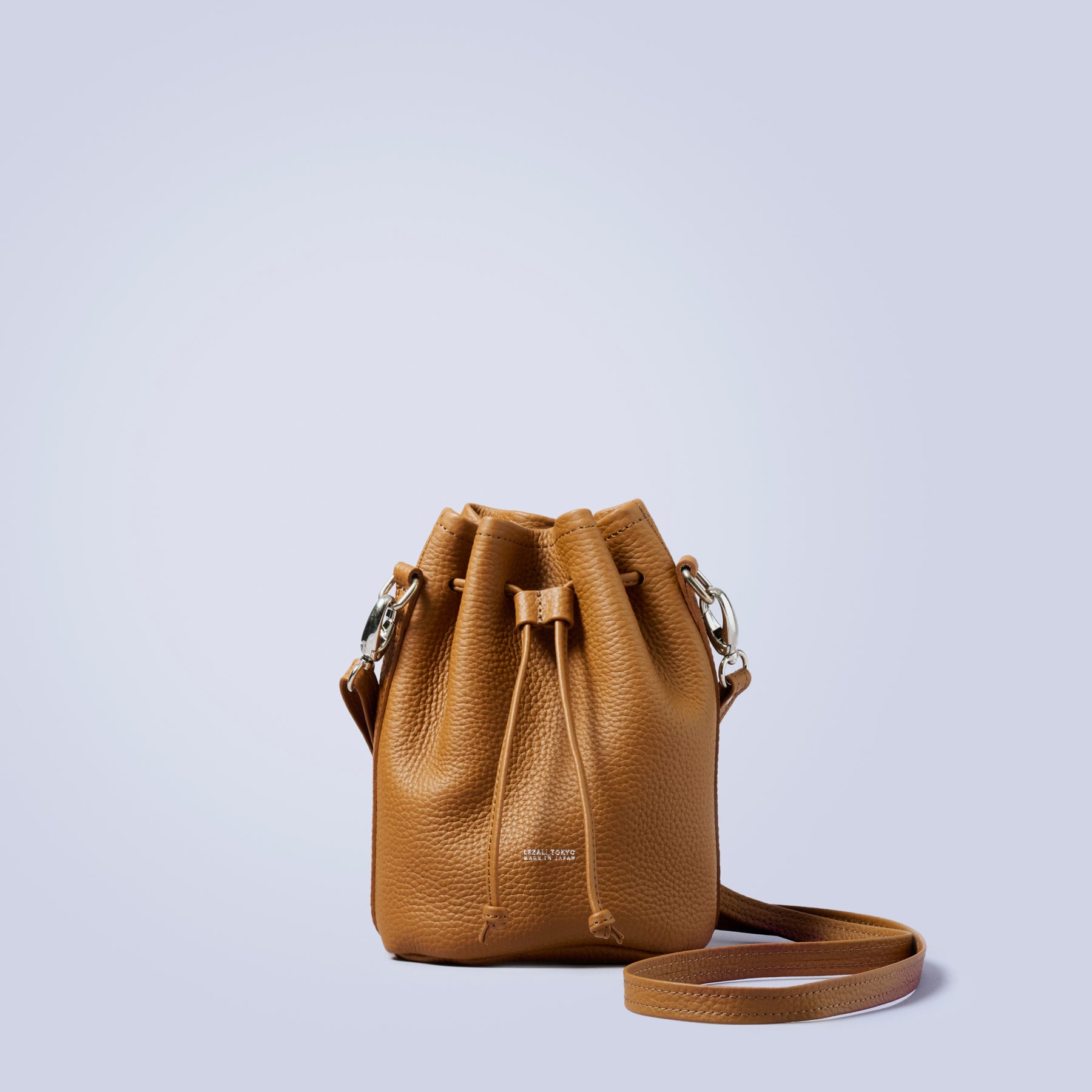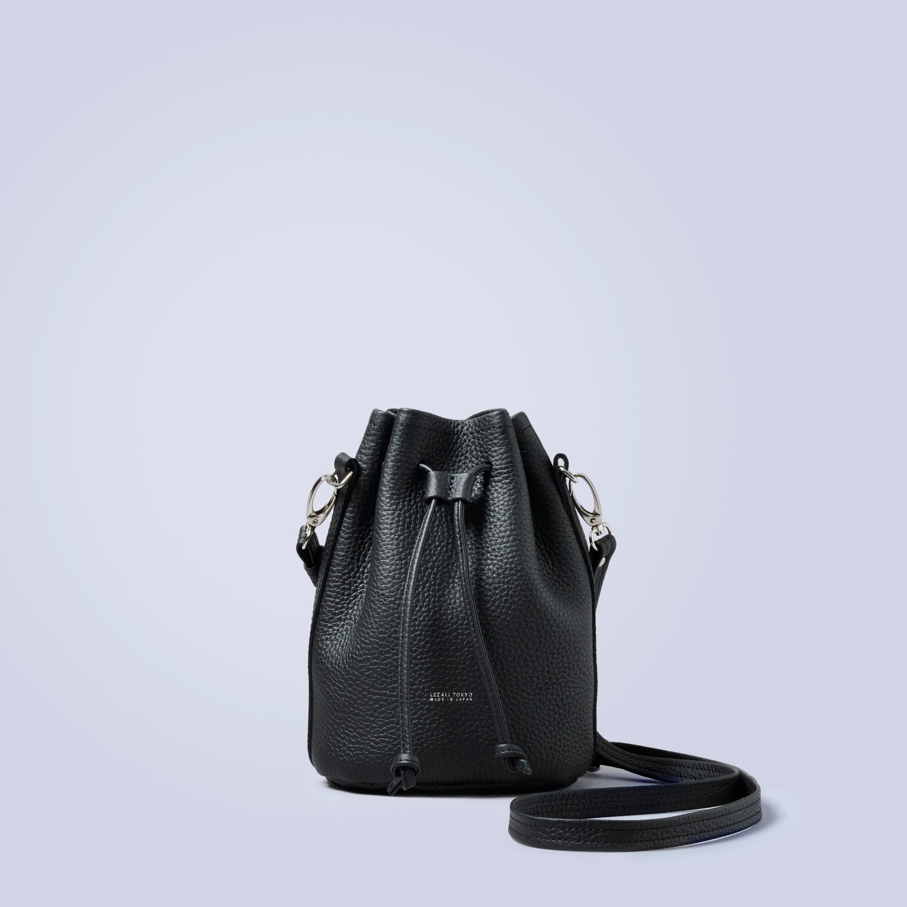 採用厚度超過2mm的極厚壓花皮革奢侈製作而成的日本製迷你抽繩包。