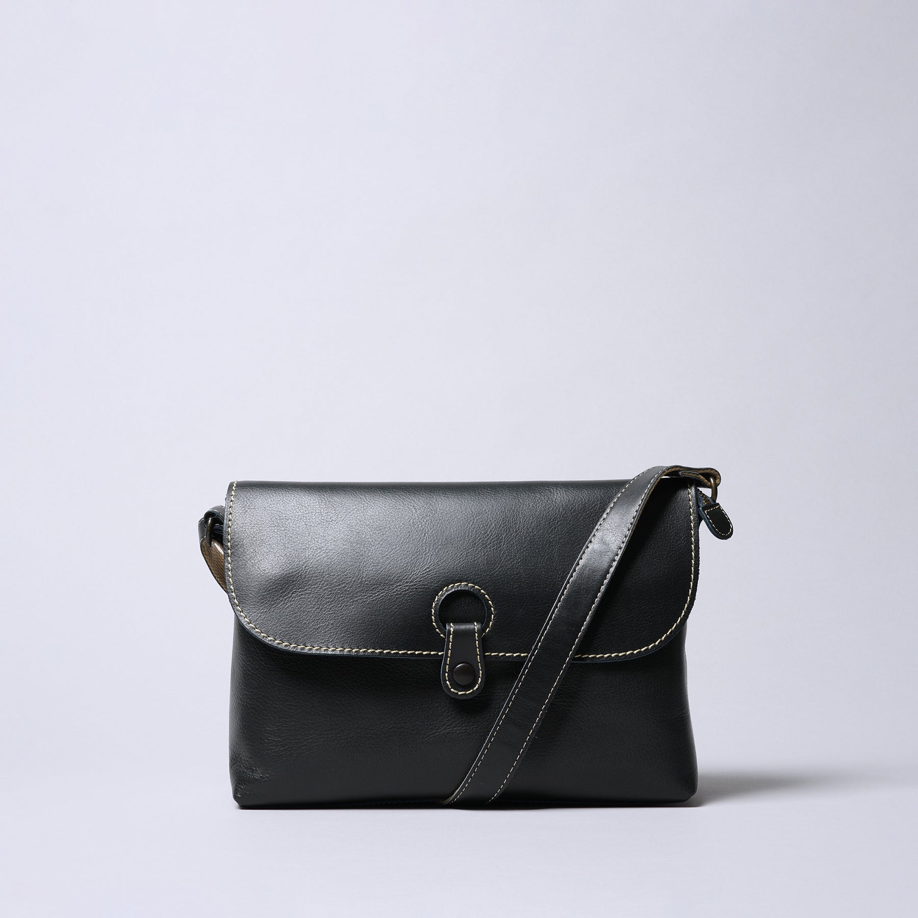 這款斜背包使用表面富有細緻紋理的牛皮製作,搭配較粗的0號縫線,並飾以包覆式按扣,是品牌旗下長年熱銷的商品系列。內裏選用的圓點圖案材質也是商品的特色之一。還可享受皮革隨著使用時間經過產生的質感變化,越使用將越柔軟,呈現出豐富多彩的魅力。
