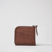 小ぶりな姿ですが、容量はたっぷり入るように仕立てました。カードが8枚、お札は5~6枚、小銭も10枚程度入れることができます。外ポケットにはSuicaや電子マネーを入れることで支払いもスマートに行えます。カードそのものは極力見せず、革の表情を最大限活かしたデザイン。半円型にくり抜いた部分からカードを押し出します。